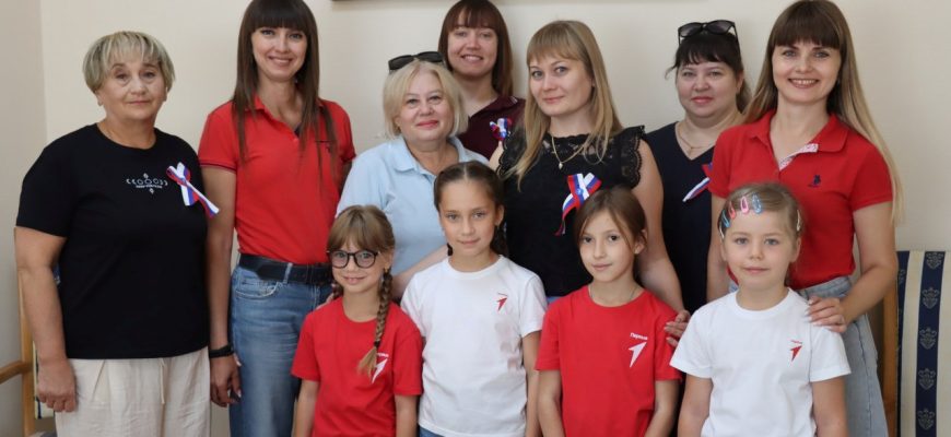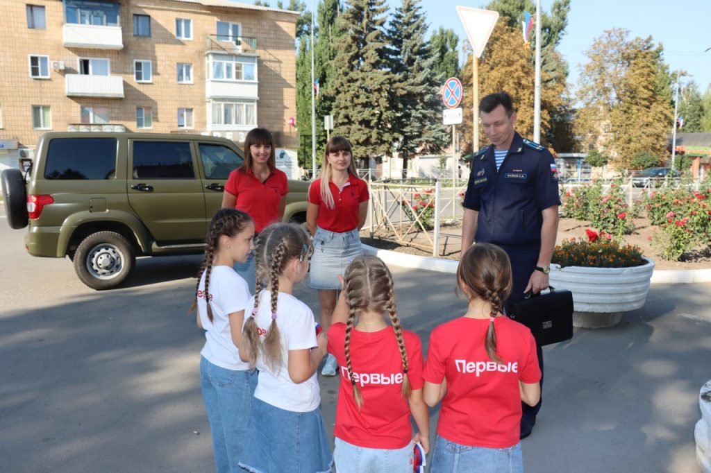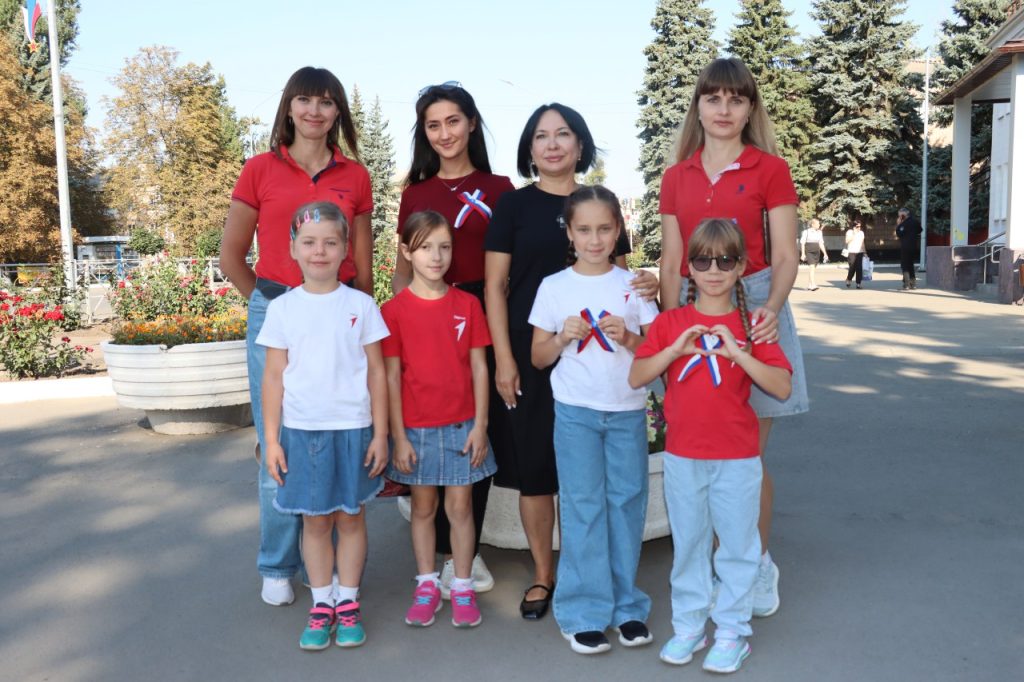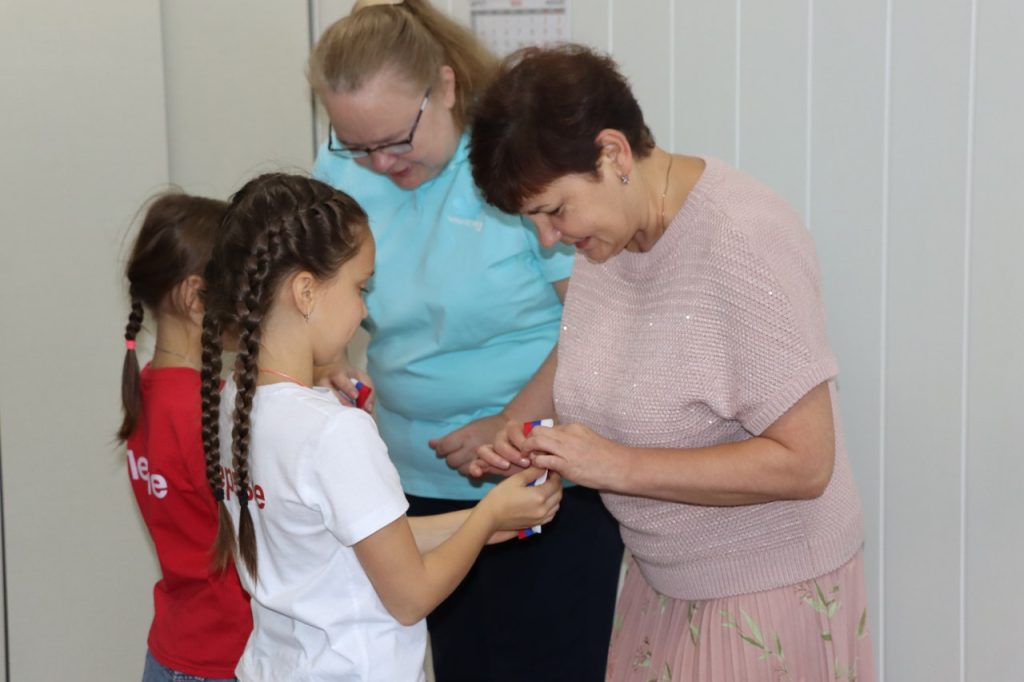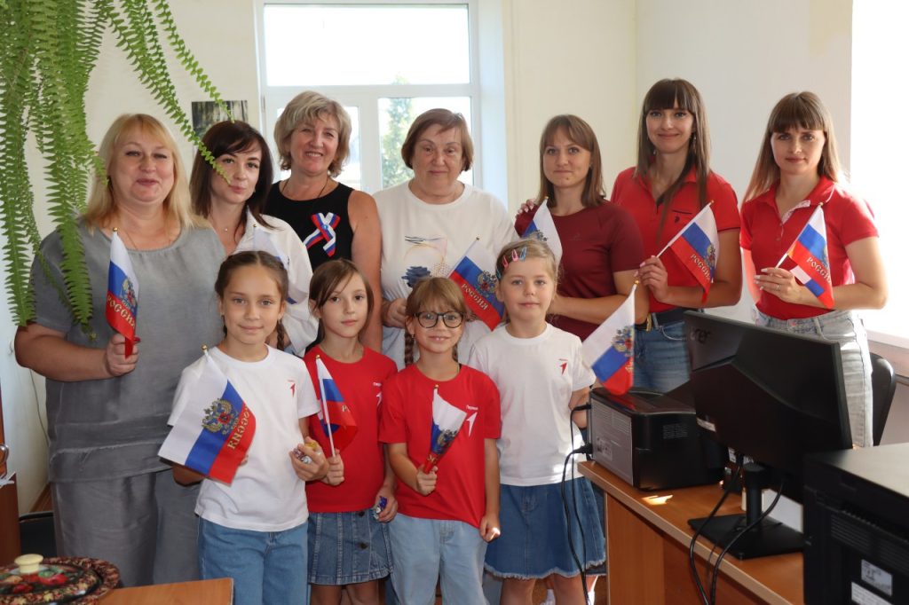 Девочки не только подарили трехцветные ленты с эмблемой Движения Первых, но и прочли стихи о флаге родной страны.