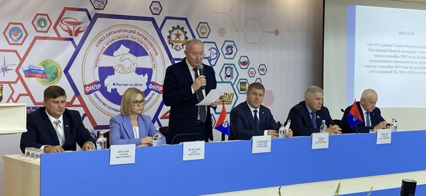 Председатель ФПРО Александр Лозыченко представил подробный отчёт о проделанной работе. Он подчеркнул, что ФПРО является самой крупной общественной организацией Ростовской области, в состав которой входят 29 членских организаций, объединяющих более 400 тыс. членов профсоюзов.