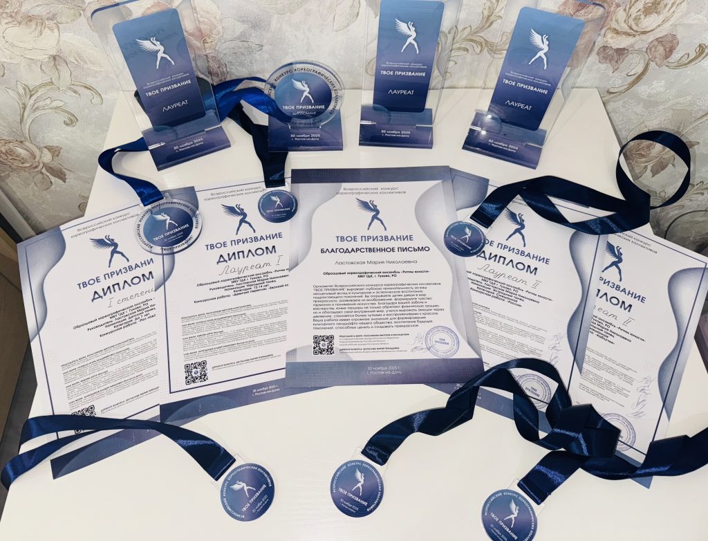 В результате наши дети заслуженно получили награды: лауреаты 1 степени за хореографическую композицию — девичий перепляс «Звонкий колокольчик», лауреаты 2 степени за номер «Каблучок» и «Россия». Дипломанты 1 степени — наши самые маленькие участники ансамбля за номер «Раз ладошка».