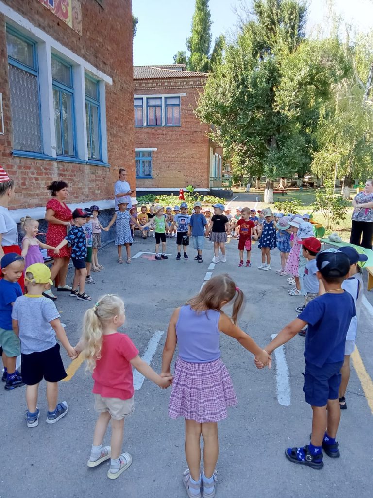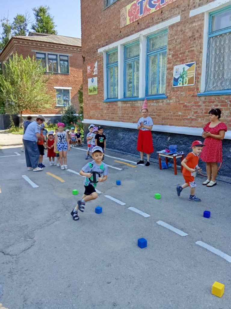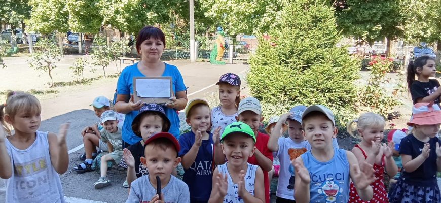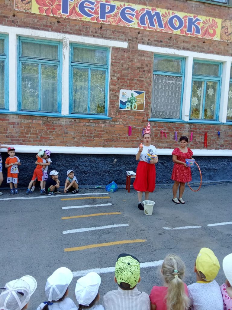 В последний месяц лета теремковские ребятишки проводили максимум времени на воздухе за счет увеличения продолжительности прогулок. Воспитатели насыщали этот знойный промежуток времени развлечениями, эстафетами, подвижными играми и играми с водой, тем самым укрепляли детский иммунитет перед сезоном простуд.