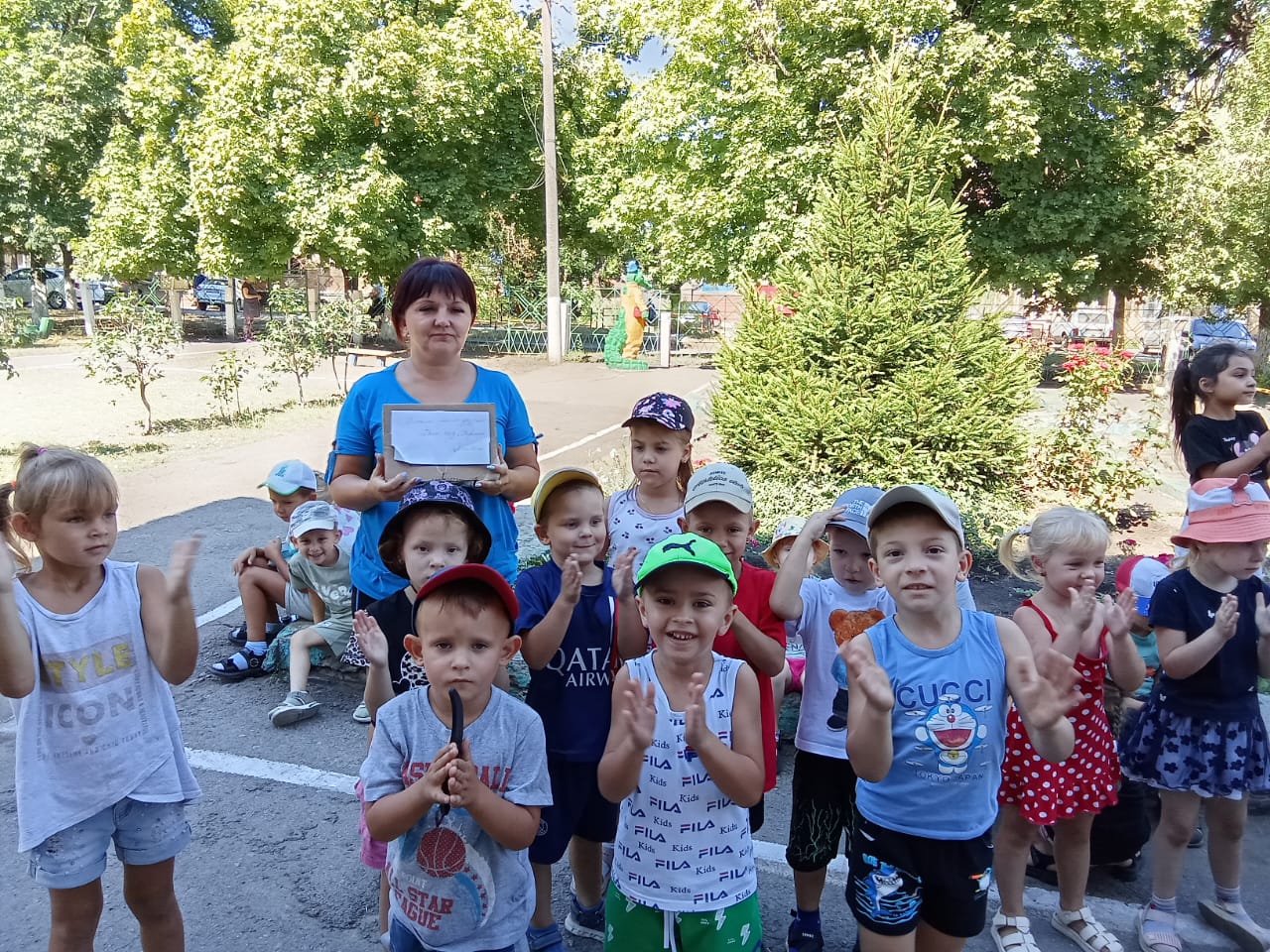 В последний месяц лета теремковские ребятишки проводили максимум времени на воздухе за счет увеличения продолжительности прогулок. Воспитатели насыщали этот знойный промежуток времени развлечениями, эстафетами, подвижными играми и играми с водой, тем самым укрепляли детский иммунитет перед сезоном простуд.