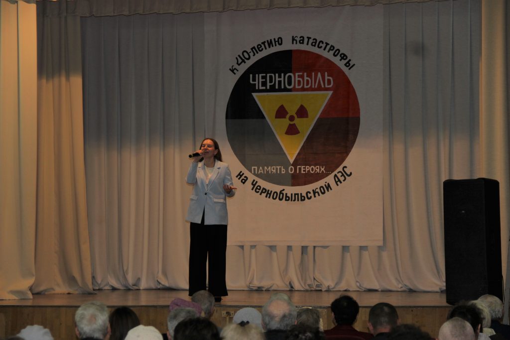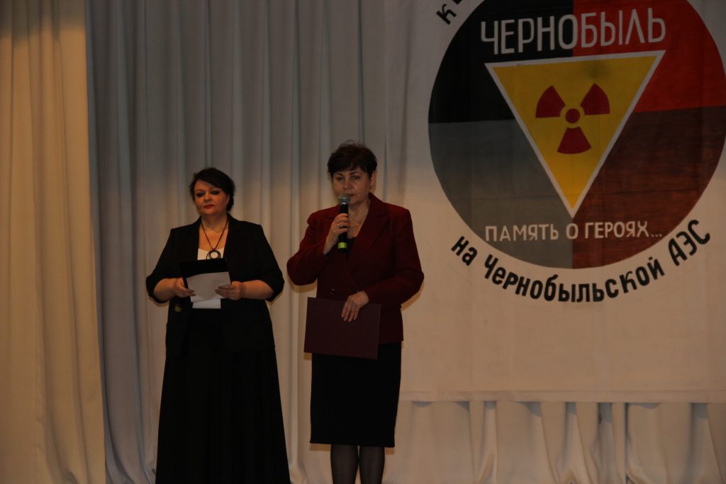 Ведущая рассказала школьникам, их учителям и гостям мероприятия о том, что на ликвидацию последствий взрыва на АЭС было мобилизовано 600 тысяч человек со всего Советского Союза, в том числе и из Гуково. В нашем городе на улице Некрасова есть памятник ликвидаторам Чернобыльской аварии. В этом году он был реконструирован благодаря неравнодушной жительнице нашего города, индивидуальному предпринимателю Наталье Владимировне Злакомановой. В ходе реконструкции памятника были установлены три плиты, на которые нанесены имена 152 наших земляков, участвовавших в ликвидации страшных последствий взрыва и спасших ценой своей жизни и здоровья нашу страну.