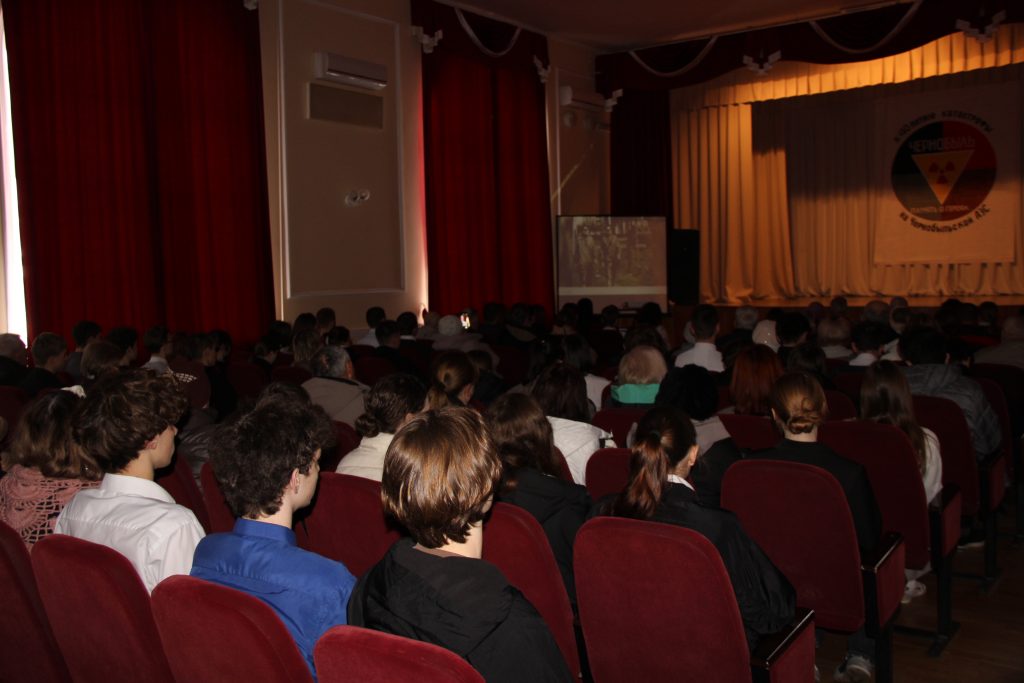 Владимир Георгиевич Попов и еще один ликвидатор последствий аварии на Чернобыльской АЭС Александр Алексеевич Лопатин поделились присутствующими своими историями. Они рассказали, когда были призваны, чем именно занимались, как выглядели населенные пункты и природа рядом с местом аварии. Ребята с интересом слушали, уточняли некоторые детали.