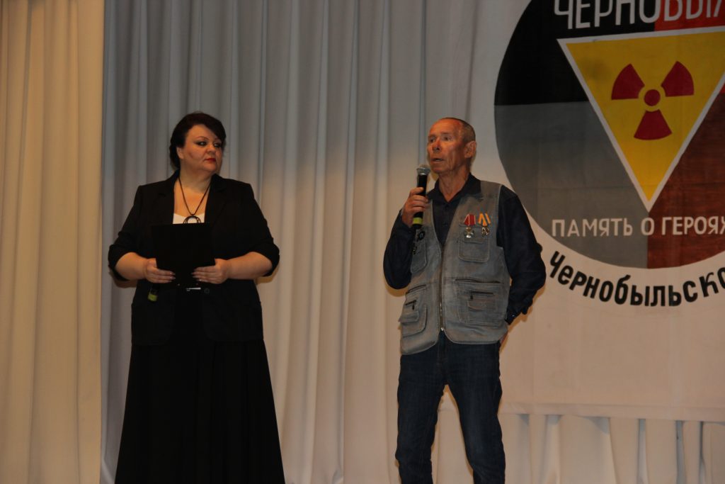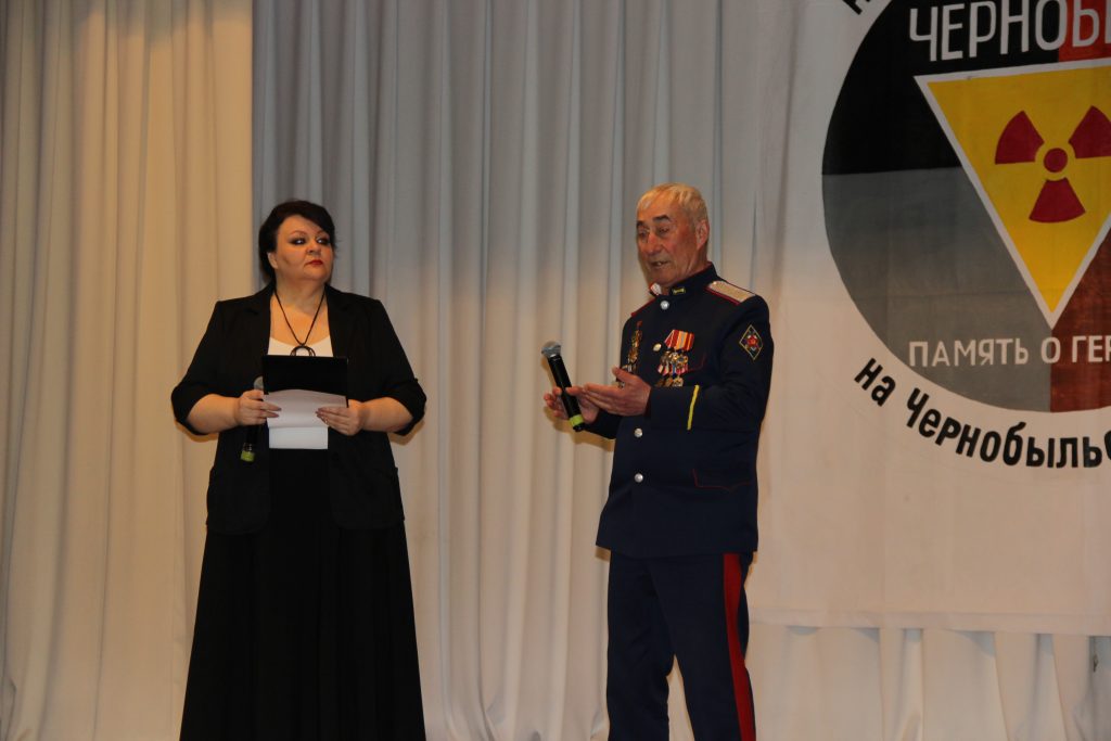 Со сцены к собравшимся обратилась заместитель Главы Администрации города Гуково Елена Юрьевна Голикова. Затем она вручила приветственный адрес от врип Главы города Гуково Дмитрия Климова Владимиру Георгиевичу Попову – председателю Гуковского представительства Ростовской областной общественной организации инвалидов Союз «Чернобыль». Вчера в Центральной городской библиотеке прошла презентация книги «Чернобыль. 40 лет без права забвения», автором которой он является. В ней представлены свидетельства очевидцев, участников тех страшных событий.