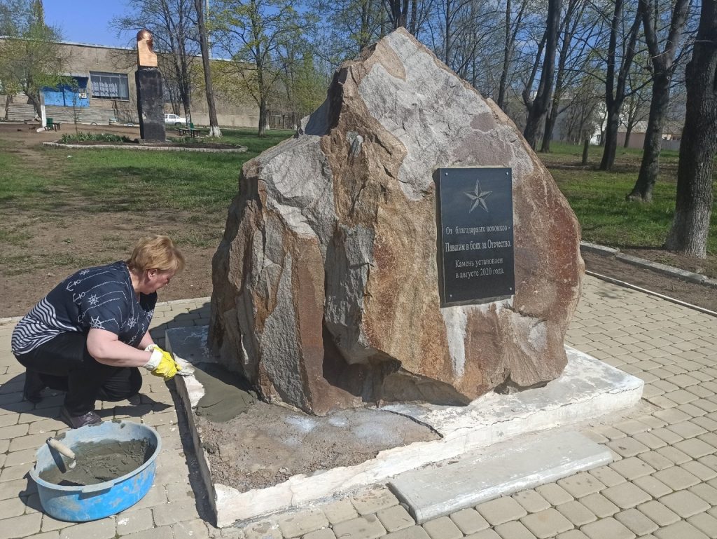 Тем временем гуковские волонтёры Победы благоустроили территорию парка, расположенного у Братской могилы воинов Красной Армии, умерших от ран в Великой Отечественной войны. Они подмели дорожки, собрали листву. А волонтёры культуры города Гуково провели работу по восстановлению штукатурного слоя на постаменте памятного камня с надписью «От благодарных потомков – павшим в боях за Отечество» и поребриках.