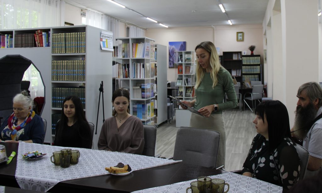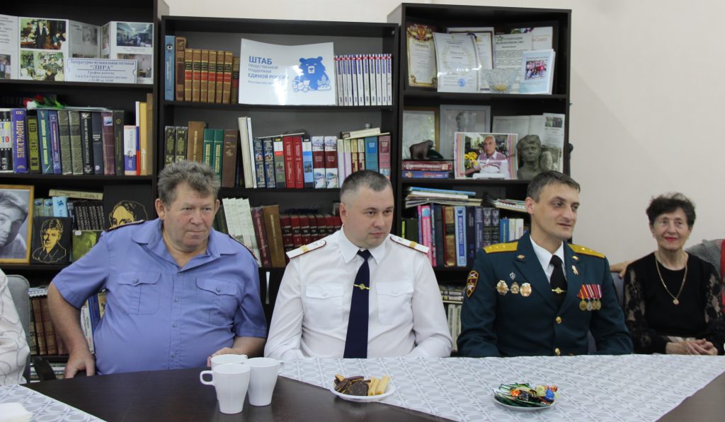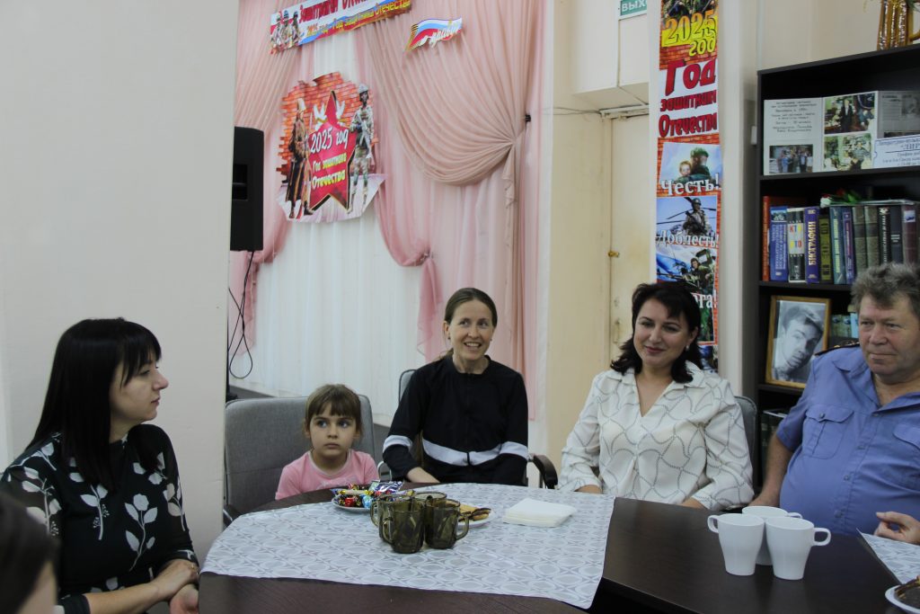 В числе почетных гостей присутствовали постоянные друзья библиотеки – исполнительный секретарь Партии «Единая Россия» Анастасия Гукова, представители гуковского казачества Андрей Капитан и Анатолий Меерис, ветеран СВО Василий Сироткин, руководитель волонтерского движения «Наша Победа» при Храме Великомученика Пантелеимона Ирина Геннадьевна Горенко.