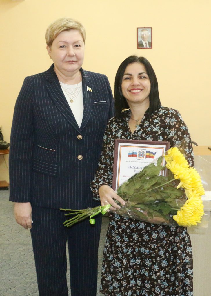 А в преддверии Дня воспитателя и всех дошкольных работников Елена Владимировна вручила награды заведующей и старшему воспитателю детского сада «Золотой ключик» Ирине Петровне Шутьевой и Светлане Сергеевне Некрасовой.