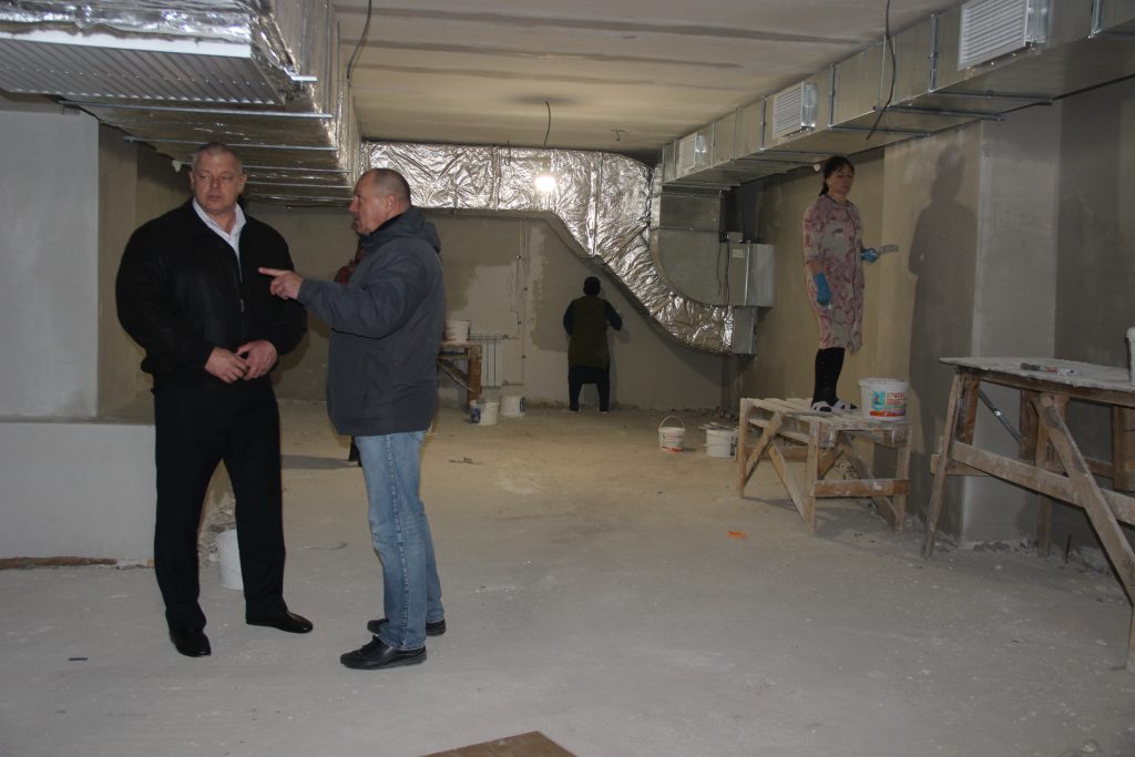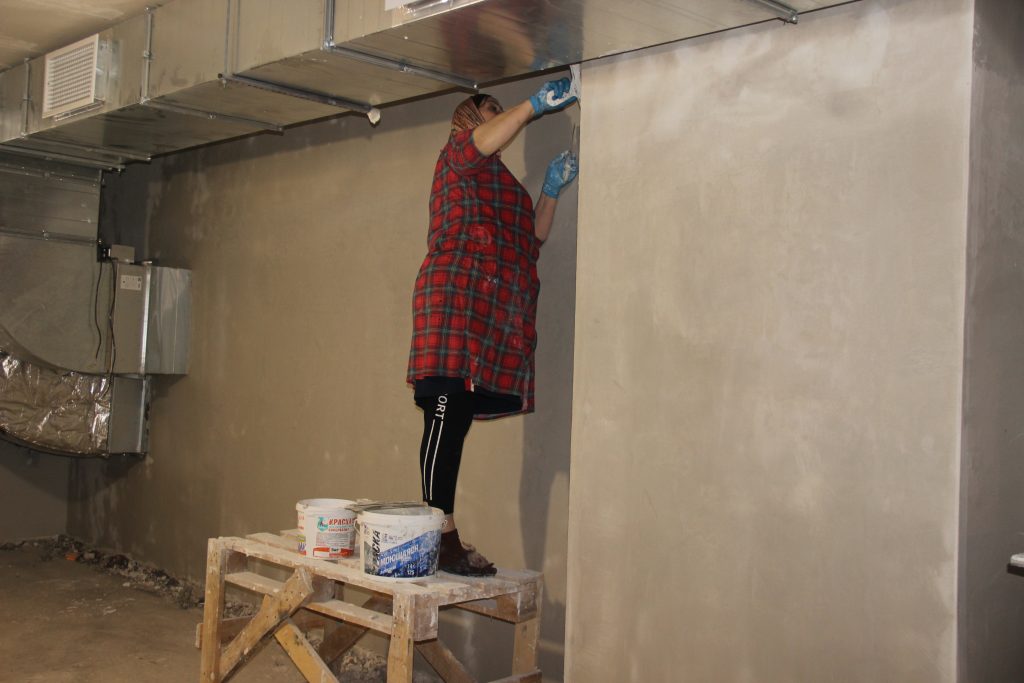 Подрядчиком уже завершен значительный объем работ. В борцовском зале произведен демонтаж старого напольного покрытия и выполнено оштукатуривание потолка. В большом бассейне ошпатлеваны балки перекрытия потолка, оштукатурен потолок и покрашены стены. В переходных галереях оштукатурены дверные и оконные откосы. На первом и втором этажах установлены наличники на двери. На балконе демонтировано старое бетонное покрытие входа и залита новая бетонная площадка.