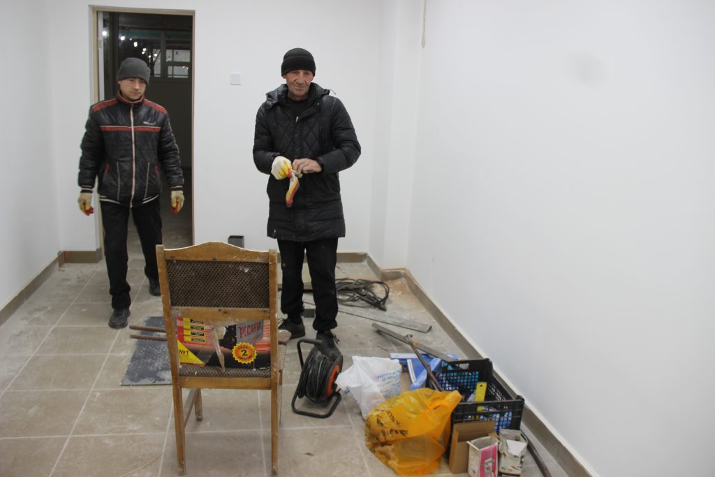 В настоящее время в тренажерном зале проводятся подготовительные работы. Осуществляется монтаж подвесных потолков типа «Армстронг». Ведутся работы по монтажу цоколя здания, а также устанавливается каркас цоколя фасада по всему периметру. На балконе большого спортивного зала укладывается пол из рифленого металлического листа. По всему периметру здания монтируются металлокаркасы входных групп. Кроме того, устанавливается металлокаркас для аварийного выхода из фойе второго этажа на задний двор. Уже заасфальтирована территория Дворца спорта.