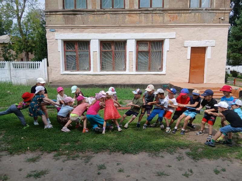 Затем состоялись командные соревнования между девочками и мальчиками в эстафетах «Донеси, не урони», «Передача мяча волной», «Парная эстафета» и «Перетягивание каната». Завершился праздник зажигательной игрой «Горячая картошка», во время которой дети танцевали под любимую музыку и передавали мяч друг другу на вылет.