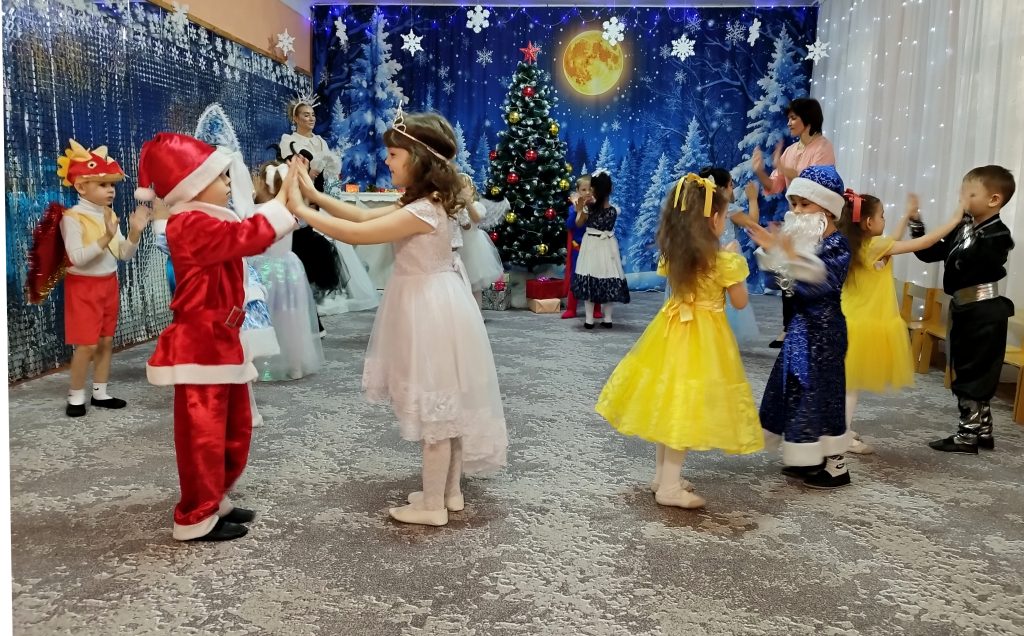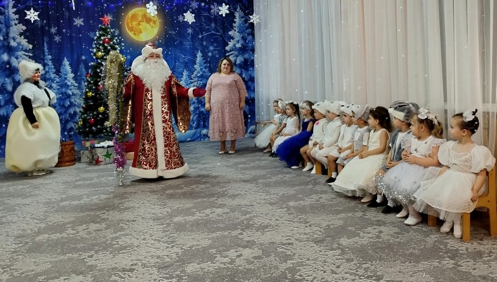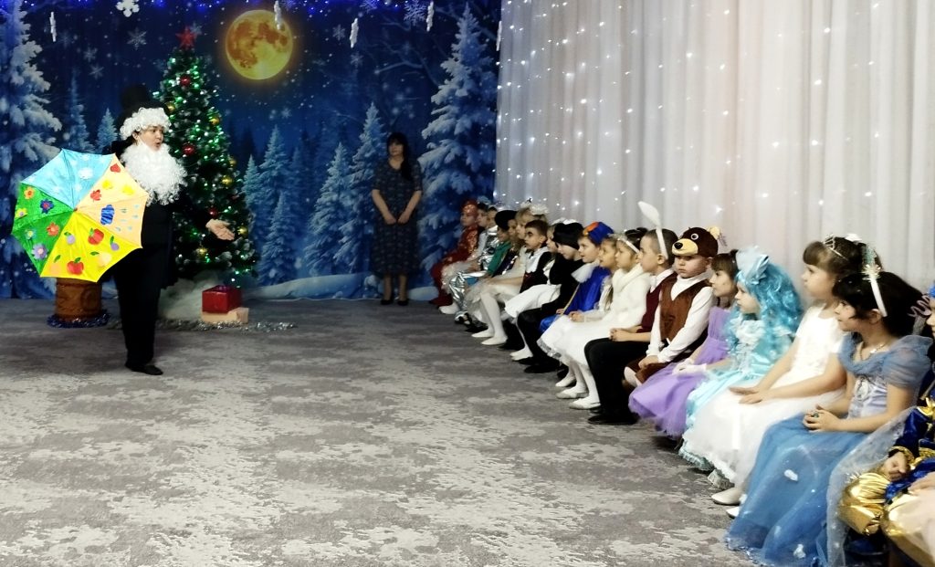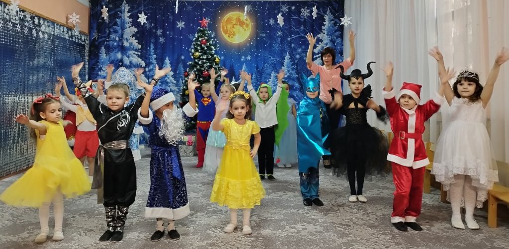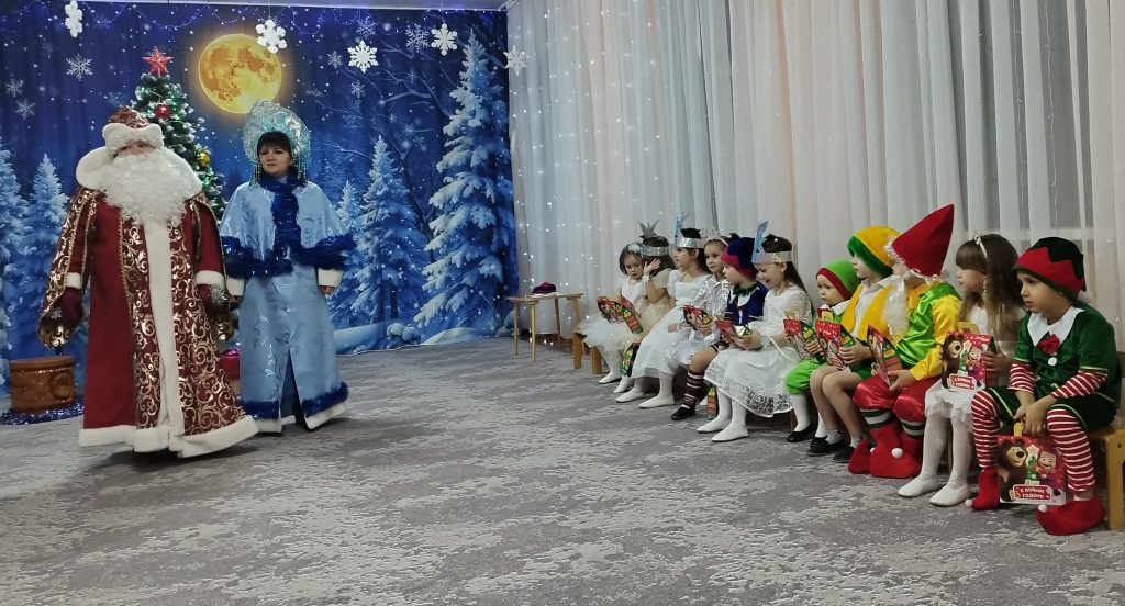 Сказочная атмосфера, радостные улыбки создавали уникальное ощущение праздника, которое не оставило равнодушным никого. «Снеговик потерял свой нос» — интригующее название новогоднего представления для детей младшей группы. Говорящая новогодняя Елка, Снегурочка, Снеговик, Лиса, Медведи и Заяц побуждали детей активно участвовать в играх, танцах праздничного утренника, развивали творческие и артистические способности дошколят, прививали культуру поведения на массовых мероприятиях. Утренник «Волшебные часы» стал не менее интересным новогодним мероприятием для детей старшей и подготовительной к школе группам. Ребятишек развлекали Елочка, Кощей Бессмертный, Нептун, и, конечно, Дед Мороз. Эмоции во время проведения утренника переполняли детей: было много сюрпризов, загадок, встреч со сказочными героями, а также игр, конкурсов, песен, танцев.