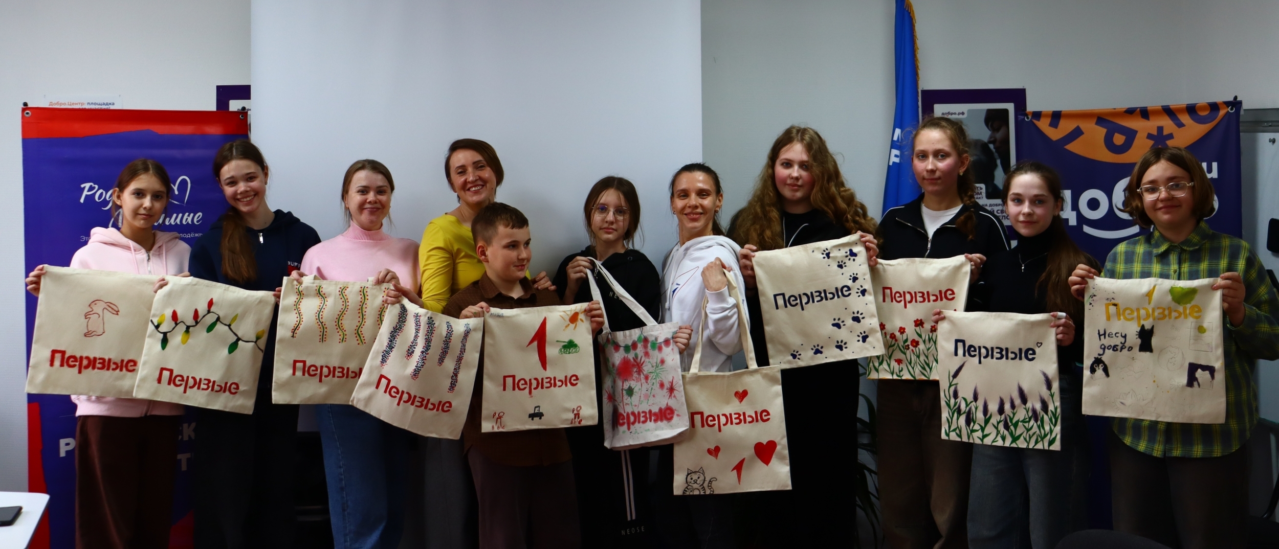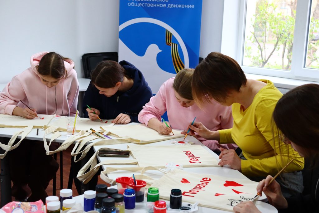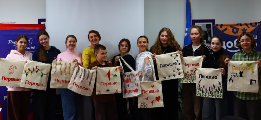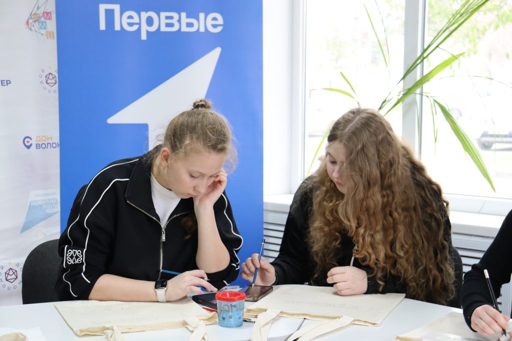 Юннаты Движения Первых собрались вместе с «Родными и Любимыми» в Муниципальном центре добровольчества города Гуково на удивительном творческом мастер‑классе по росписи шопперов.