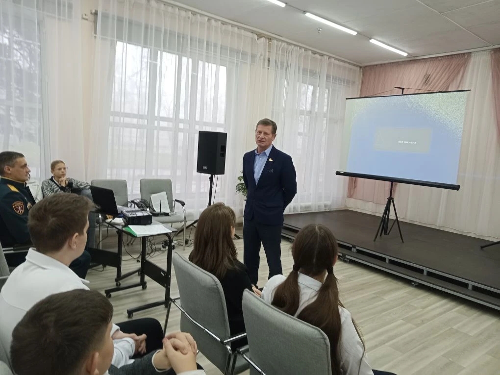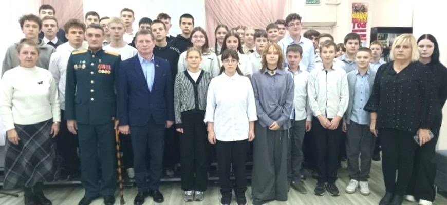 Участниками патриотического часа стали старшеклассники школы №15. В качестве почётных гостей были приглашены участник СВО Василий Сироткин и депутат Гуковской городской думы, ветеран вооружённых сил РФ и труда Валерий Беня.