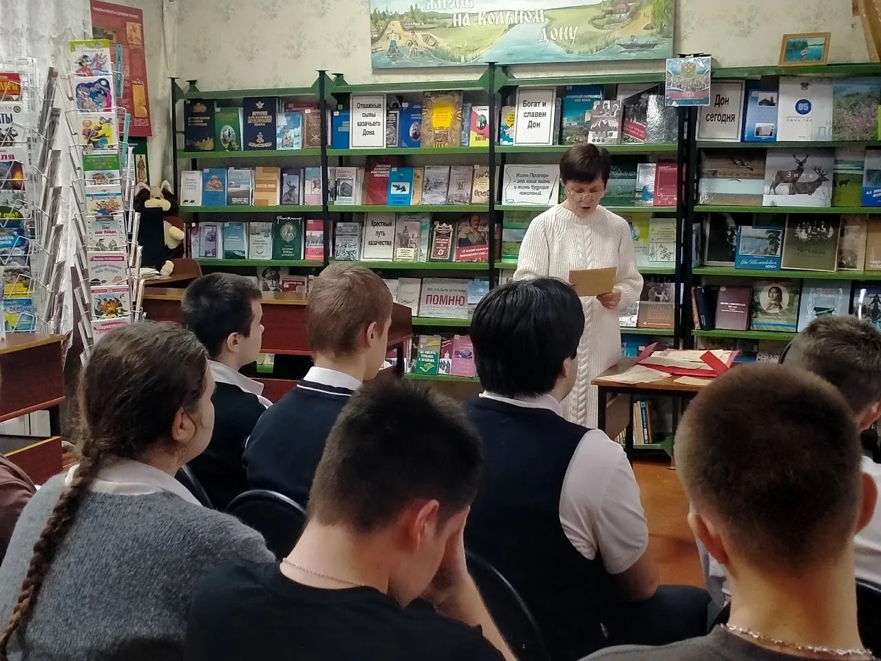 Этой теме был посвящён урок памяти, проведенный для учащихся 10 класса школы №6 в городской библиотеке №1. На встрече прозвучали строки из подлинных фронтовых писем. Эти драгоценные свидетельства времени, бережно хранившиеся в одной из семей читателей библиотеки, а затем переданные в дар, рассказали о буднях солдата Кузьмы. Он делился с близкими своими переживаниями, расспрашивал о жизни дома, мечтал о будущем и верил в скорую Победу.