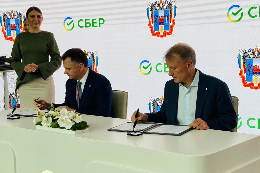 Соглашение о развитии сотрудничества в вопросах разработки и внедрения передовых цифровых технологий и сервисов, в том числе на основе искусственного интеллекта, подписали сегодня, 19 июня, на ПМЭФ-2025 врио губернатора Ростовской области Юрий Слюсарь и президент, председатель правления Сбербанка Герман Греф.