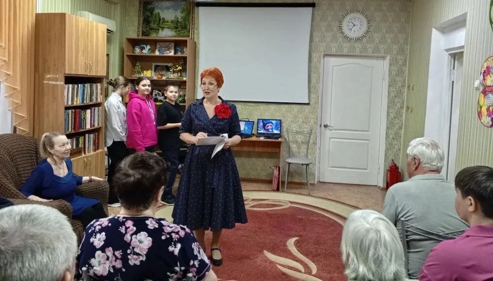 В рамках проекта «Подари тепло людям» специалисты городской библиотеки №2, волонтёры культуры и солисты вокальной студии «Вдохновение» Дома детского творчества (руководитель О.Г. Бондарева) подарили милым дамам Центра социального обслуживания г. Гуково вечер-комплимент «Есть в марте день особенный».