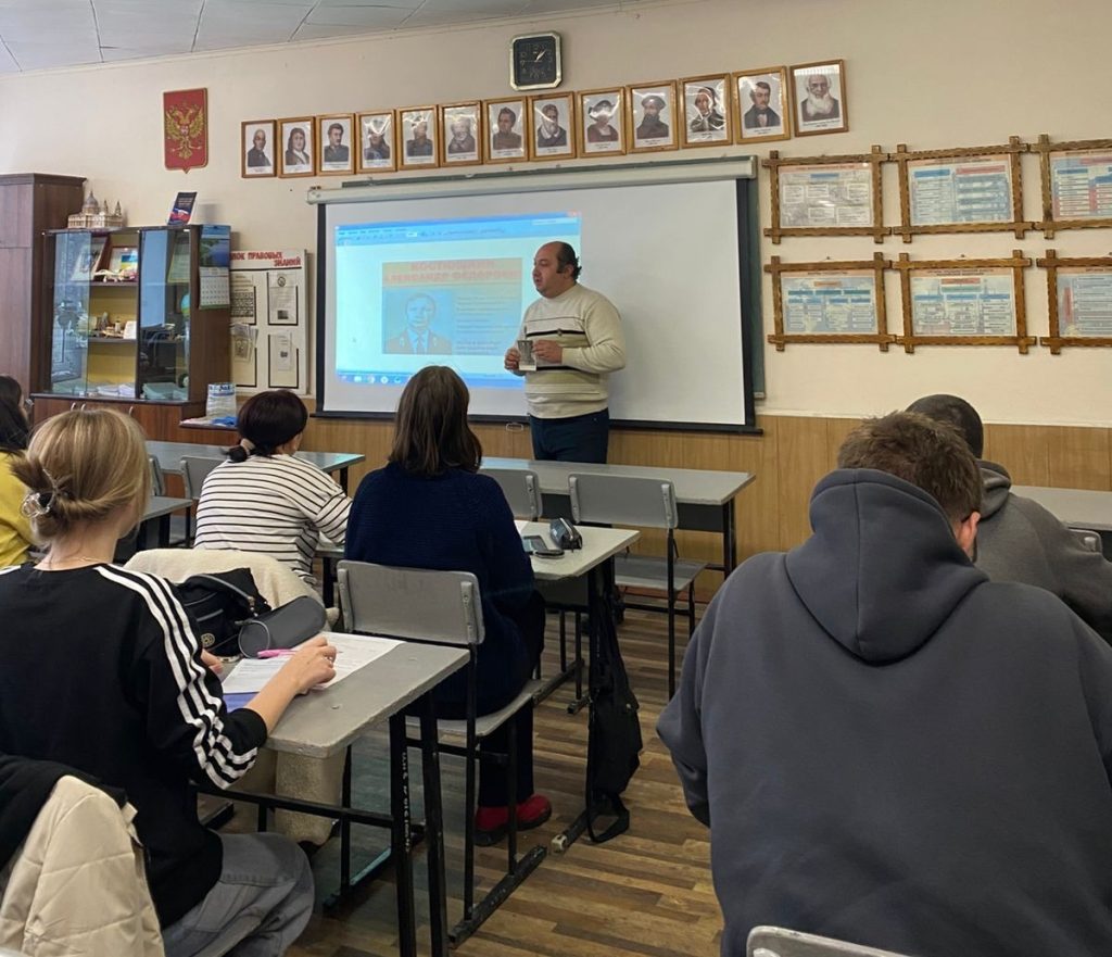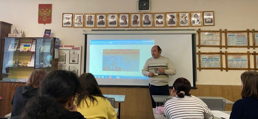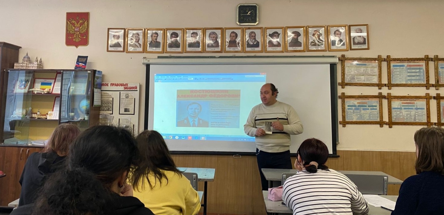 6 ноября в Гуковском строительном техникуме Советником директора по воспитанию и взаимодействию с детскими общественными объединениями Э.Ю. Енгояном был проведён Урок мужества «Подвиг во имя жизни», в ходе которого обучающимся была рассказана история подвига капитана милиции Александра Фёдоровича Костюшкина, ценою своей жизни исполнившего свой профессиональный и гражданский долг.