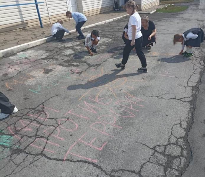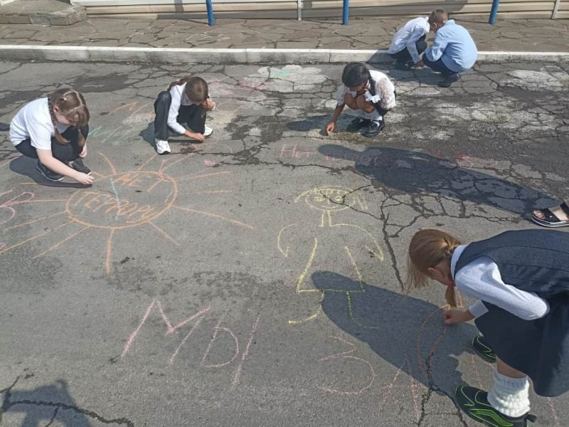 В рамках мероприятий, приуроченных к борьбе с терроризмом, 2 сентября на площади клуба «24» дети рисовали на асфальте на тему «Я рисую мир!». Участниками мероприятия были учащиеся 2 класса школы №3.