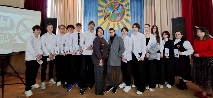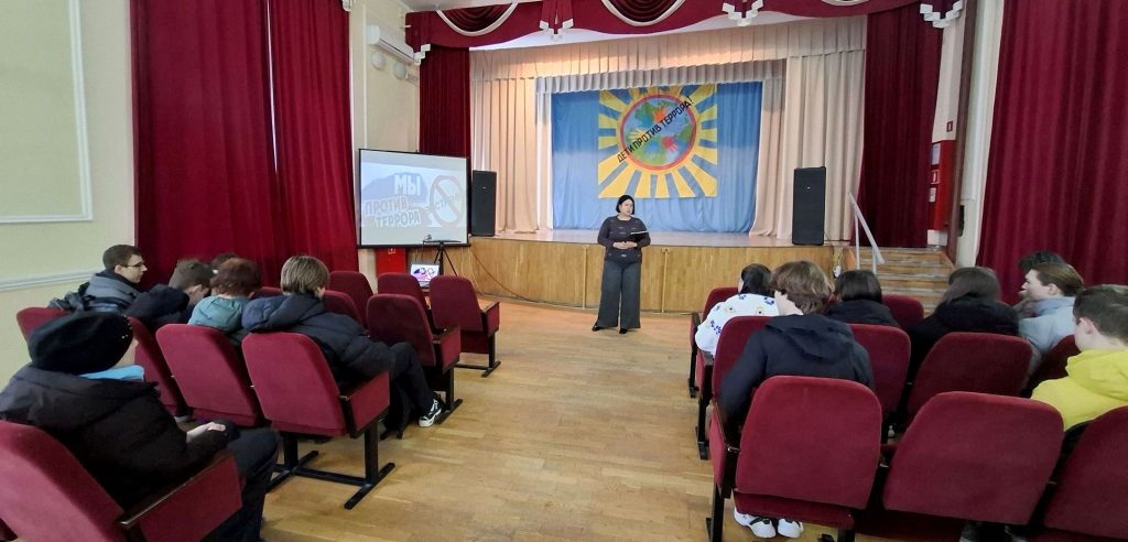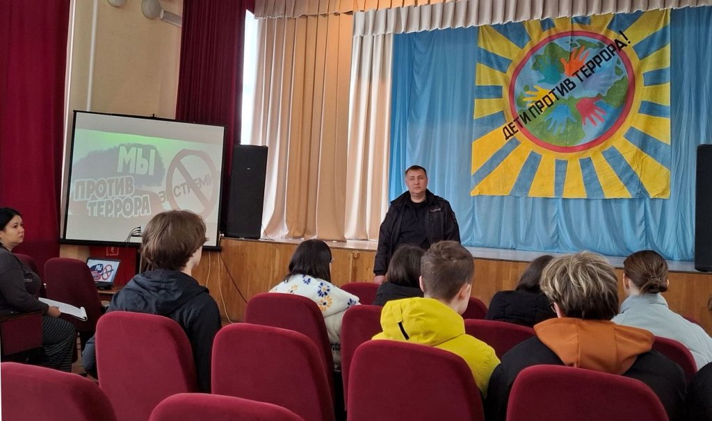 Ведущая привела примеры террористических актов в Российской Федерации, в ходе беседы разобрали понятия «терроризм» и «экстремизм», чем они отличаются друг от друга, ребята составляли портрет террориста и узнали о том, как не попасть под влияние экстремистских группировок. После просмотра тематических видеороликов школьники быстро включились в работу и активно обсуждали причины возникновения экстремизма и терроризма, способы вовлечения молодёжи в экстремистские организации.