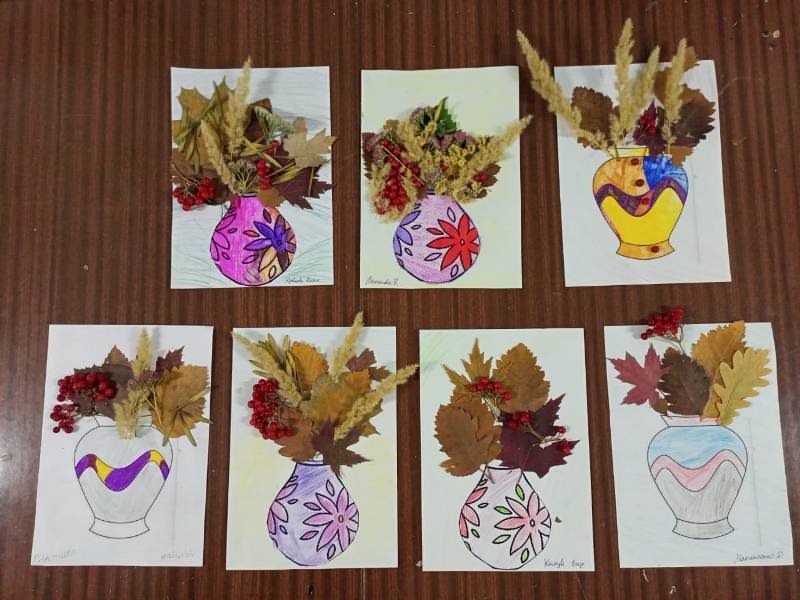 Сохранить хотя бы частичку этой красоты в доме можно, создав невероятно красивый букет из осенних листьев. Ребята из кружка ДПИ «Рукодельница» с удовольствием сделали букеты -аппликации из осенних листьев, калины и других природных материалов.