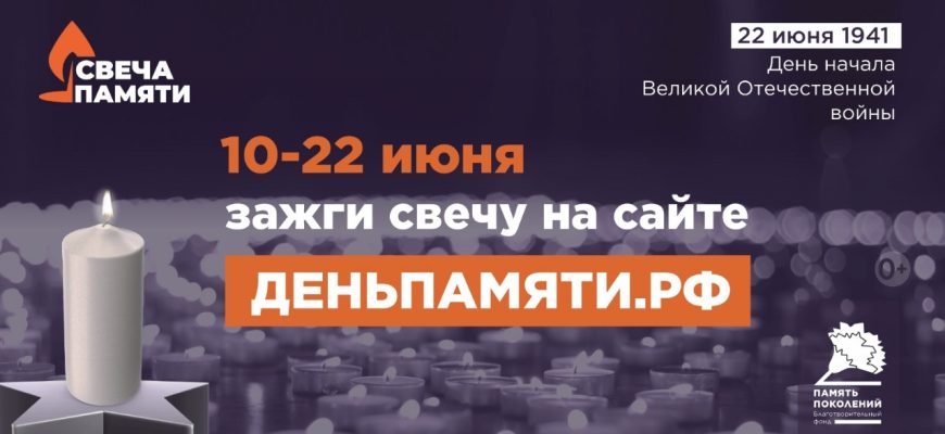 10 июня по всей России стартовала онлайн-акция «Свеча памяти». До 22 июня на сайте деньпамяти.рф каждый житель Ростовской области может зажечь свою виртуальную свечу и почтить память героев Великой Отечественной войны.