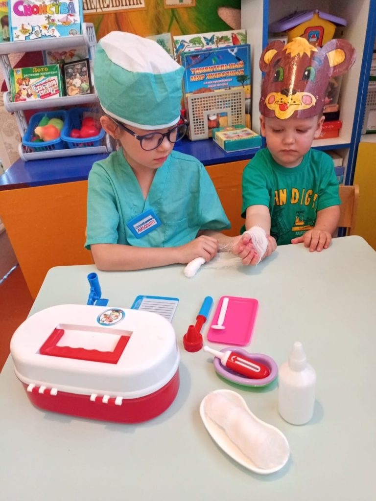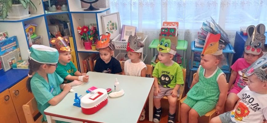 В ходе игр дошколята общались друг с другом, развивали физические качества. Были проведены игры: «Да – нет», «Собери витаминки», «Что нужно положить в чемоданчик для Айболита». Доктор познакомил детей с полезными для здоровья продуктами.