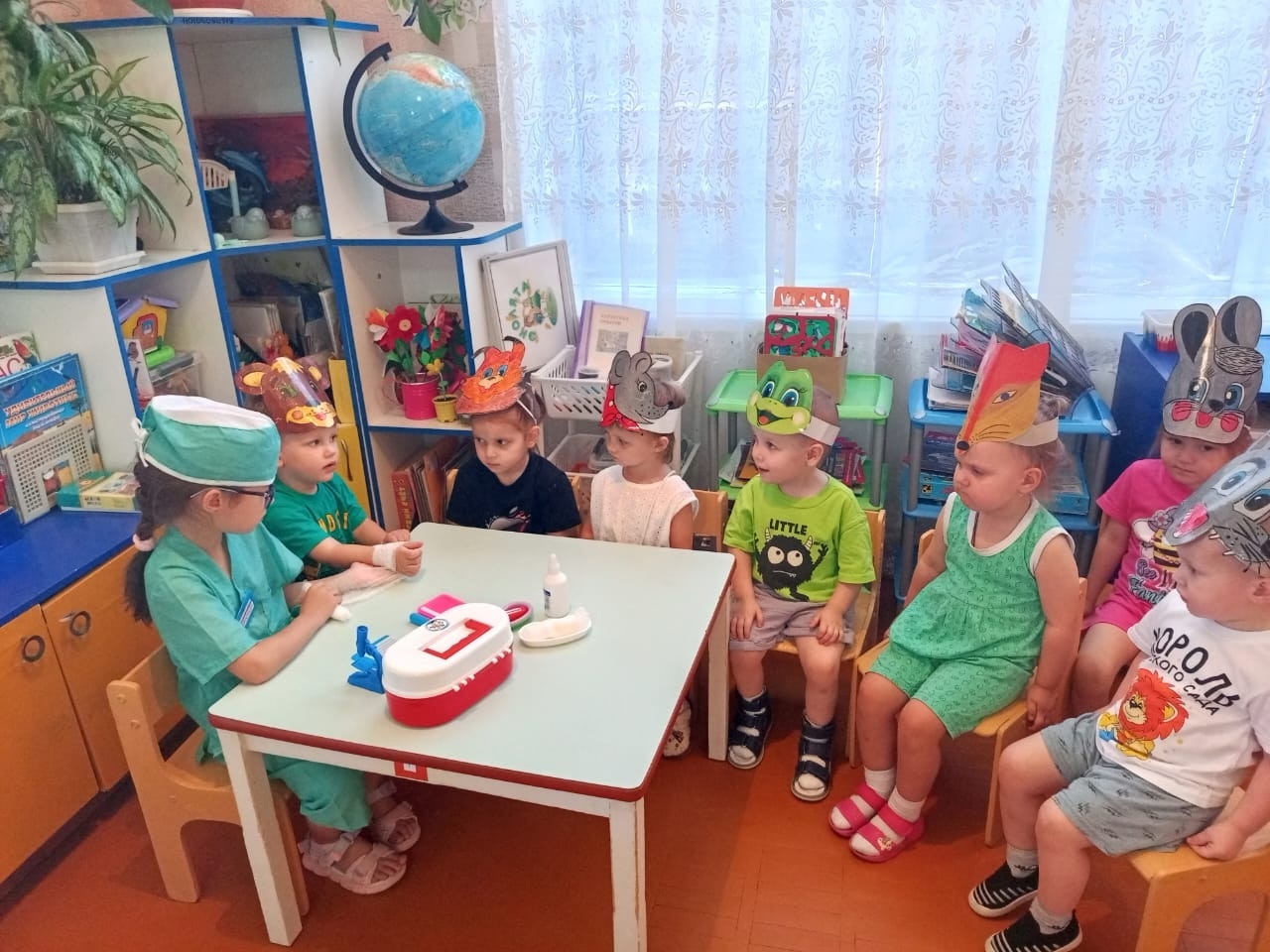 В младшей группе прошло развлечение на тему: «В гостях у Доктора Айболита». Дети в игровой форме закрепили элементарные представления о здоровом образе жизни.