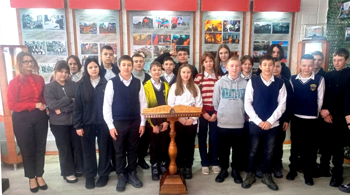 В ходе посещения экспозиции «Зал Боевой Славы» учащиеся Гимназии узнали о выпускниках Гуковского строительного техникума, героях СВО, чьи имена навсегда запечатлены на «Стене памяти», познакомились с экспонатами, изготовленными в мастерских техникума и оставили свои впечатления в Книге отзывов.