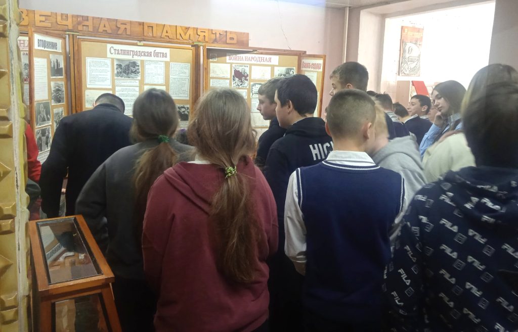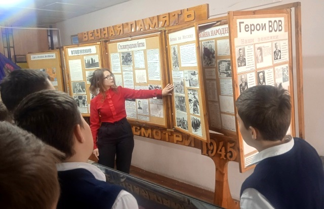 5 февраля в Гуковском строительном техникуме, в рамках проводимого месячника военно-патриотического воспитания, была проведена экскурсия для учащихся 7 «Б» класса Гимназии № 10 г. Гуково. В качестве экскурсовода выступила студентка группы С.23.1 Н.С. Дёмина, благодаря которой удалось в интересной и познавательной форме продемонстрировать экспонаты музея «История Донского края» и экспозиции «Зал Боевой Славы» нашего техникума.