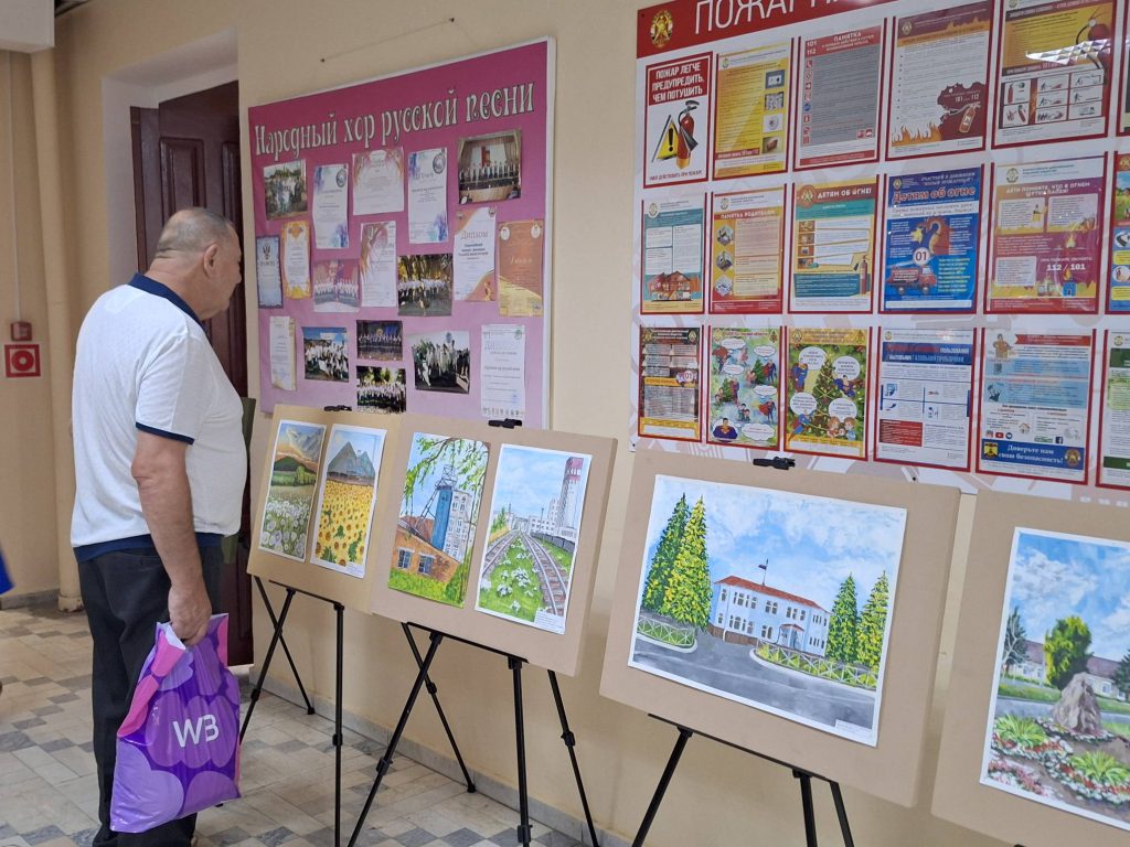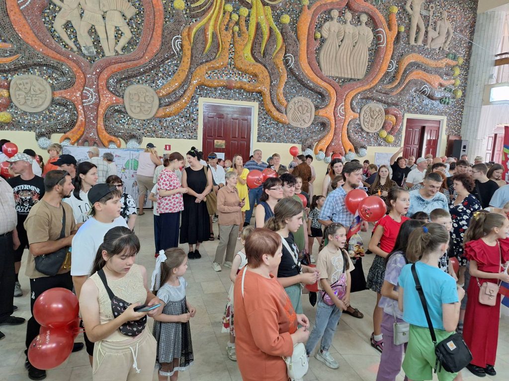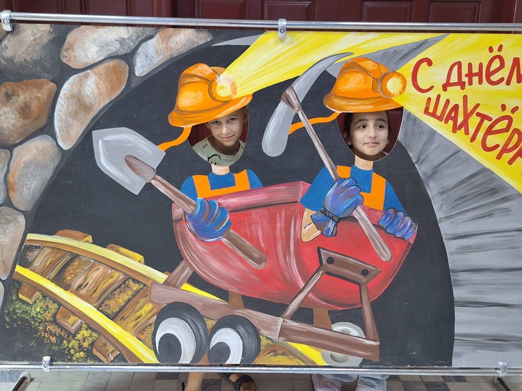 В фойе учреждения все желающие смогли сфотографироваться на замечательной фотозоне и посмотреть выставки рисунков воспитанников Детской школы искусств им. И.О. Дунаевского и Детской школы искусств им. М.И. Глинки, на картинах были изображены памятные места и красивые пейзажи нашего города, также ребята в своих творческих работах отразили уважительное отношение к тяжёлому шахтерскому труду, важной профессии горняка.