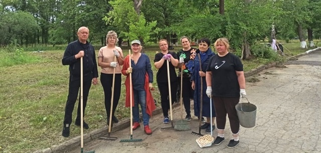 И проведя уборку парка «Алмазный» смотреть на мир, который стал ещё красивее, благодаря усилиям работников клуба «Алмазный», специалиста городской библиотеки № 10 г. Гуково, желающим помочь жителям поселка Алмазный и В.И. Бутову, предоставившему технику и косарей.