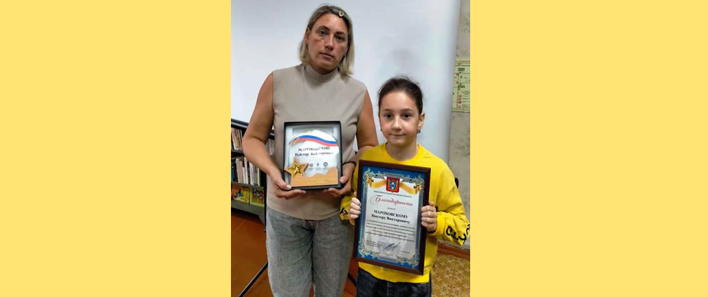 Так как Виктор Викторович находится в зоне проведения СВО, получать награды была делегирована Юнна Геннадьевна Малеева – начальник Гуковского местного отделения движения «Волонтёрская рота «Боевое братство». 21 октября в читальном зале городской библиотеки №1 после просмотра фильма «Герои. Всегда. Рядом» Юнна передала награды семье В.В. Мараховского.