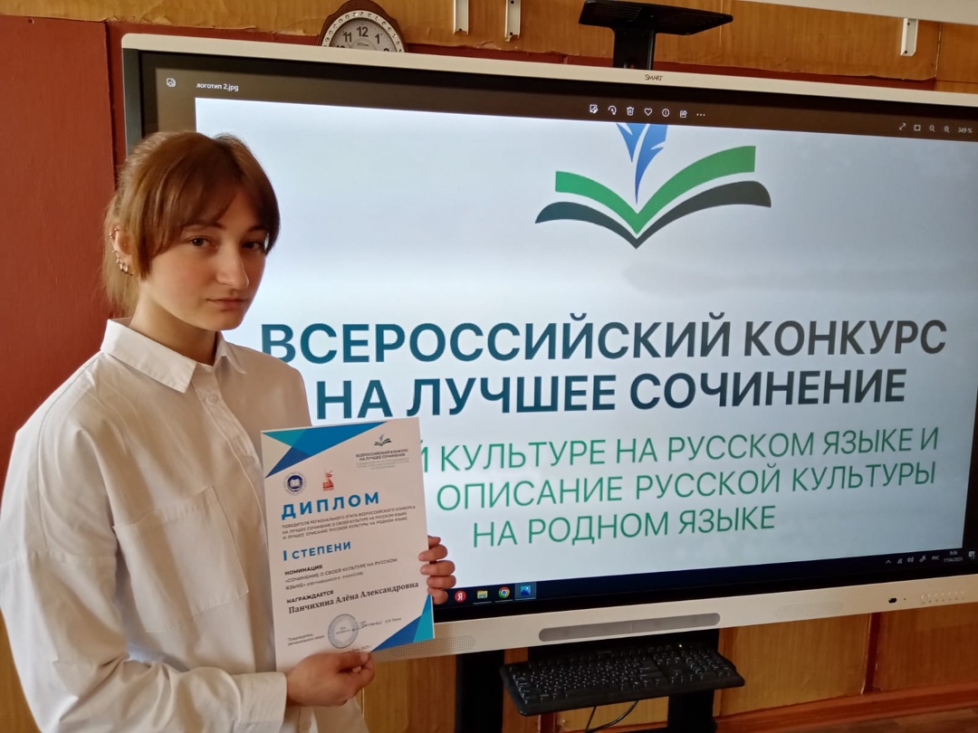 В апреле 2025 в городе Ростове-на-Дону прошёл региональный этап Всероссийского конкурса на лучшее сочинение о своей культуре на русском языке. На конкурсное мероприятие областного уровня были представлены работы победителей муниципального этапа в возрастной категории 8 – 9 классов — ученицы школы № 1 Алёны Панчихиной и Ольги Мясоедовой, обучающейся Гимназии № 10, в возрастной категории 10 – 11 классов.