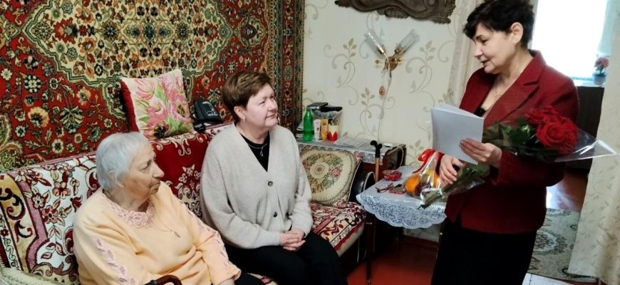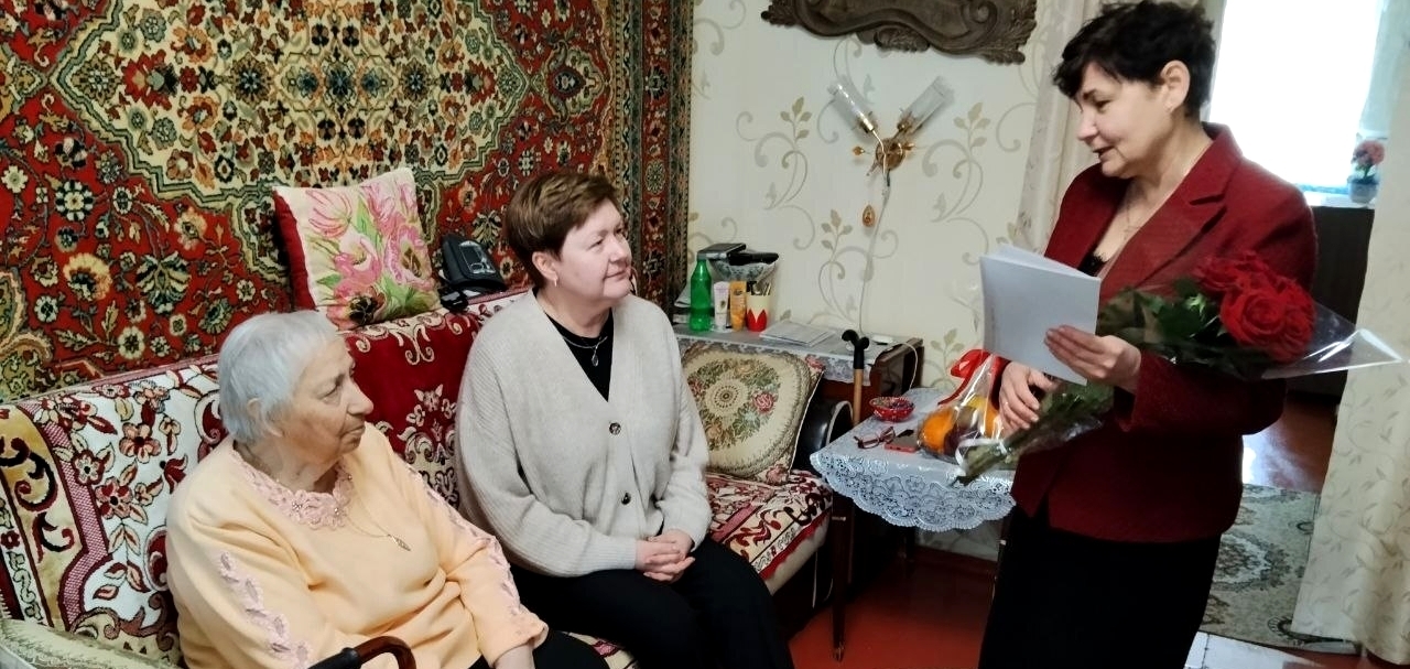 В преддверии 81-й годовщины Великой Победы депутат ЗСРО Елена Владимировна Елисеева вместе с заместителем главы Администрации города Еленой Юрьевной Голиковой побывали в гостях у Анны Сергеевны Чеботаревой и вручили ей приветственный адрес от губернатора Ростовской области Юрия Слюсаря.