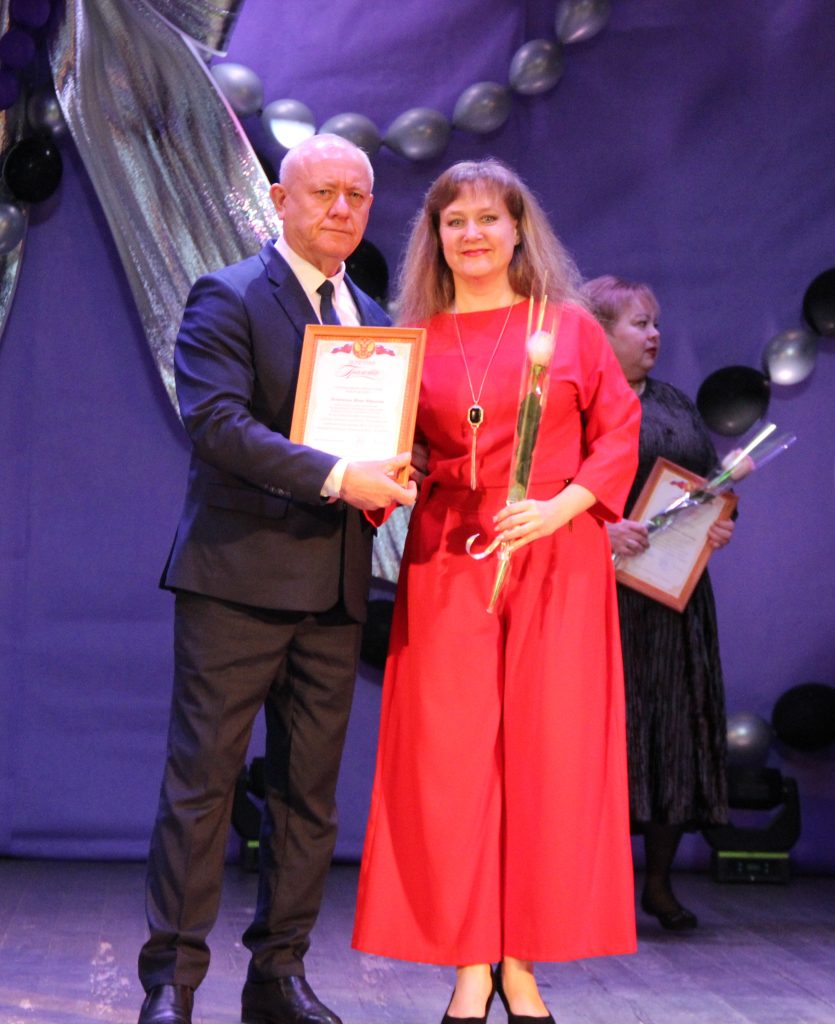 Букет цветов Владимир Ильич подарил и Е.Ю. Голиковой заместителю главы Администрации города Гуково.