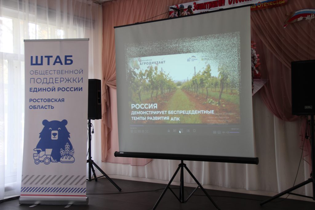 Федеральный проект «Единой России» «Российское село» совместно с Россельхозбанком при поддержке Минсельхоза России накануне этой даты проводит повсеместно Всероссийский агродиктант. Это проект, направленный на повышение уровня знаний об агропромышленном комплексе страны, раскрытие потенциала и демонстрацию возможностей для развития жителей нашей страны в сельском хозяйстве через знакомство с современным и технологичным АПК России.