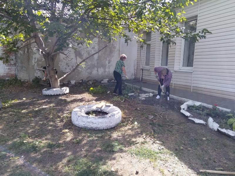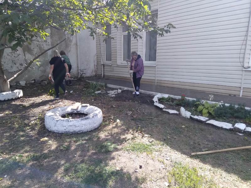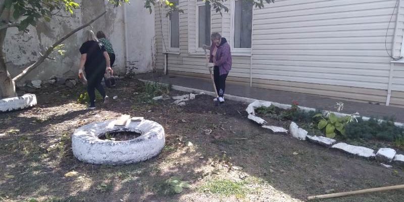 Участники экологического субботника с удовольствием приводили в порядок клумбы и территорию, избавляясь от сухой травы.