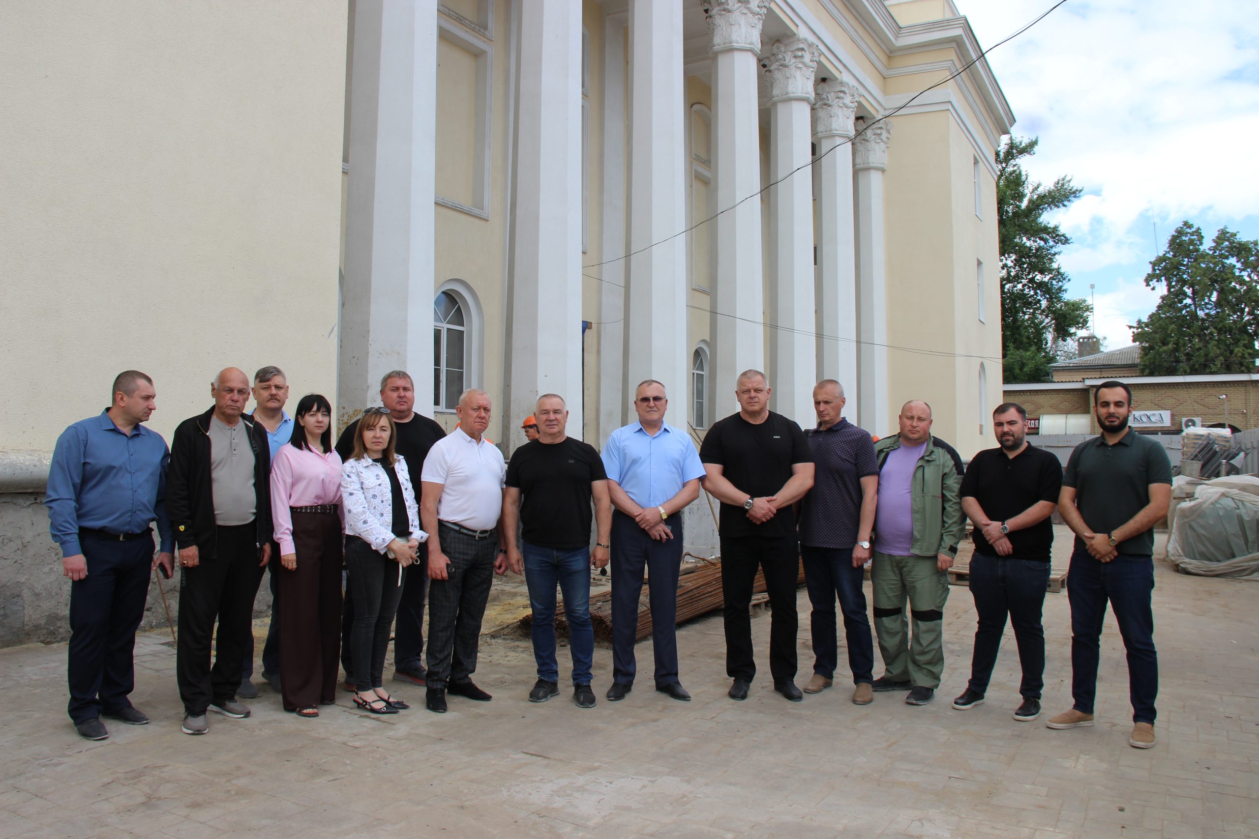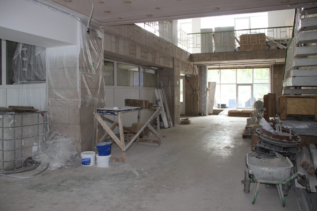 Вторым объектом, который посетила рабочая группа, стал ДК «Антрацит», построенный в 1965 году. Здесь также возникли проблемы с первым подрядчиком, что привело к расторжению контракта. Сейчас работы ведет компания «Строительное управление – 310».