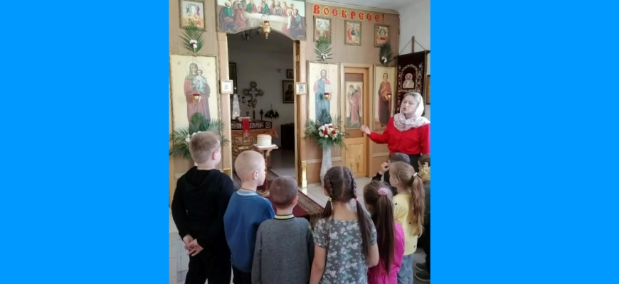 В рамках Родительского клуба «Семейный Очаг» дети детского сада «Ромашка» подготовительной группы с педагогами О.О. Извариной, М.В. Скорода в дни Светлой седмицы посетили храм Великомученика Пантелеимона целителя.