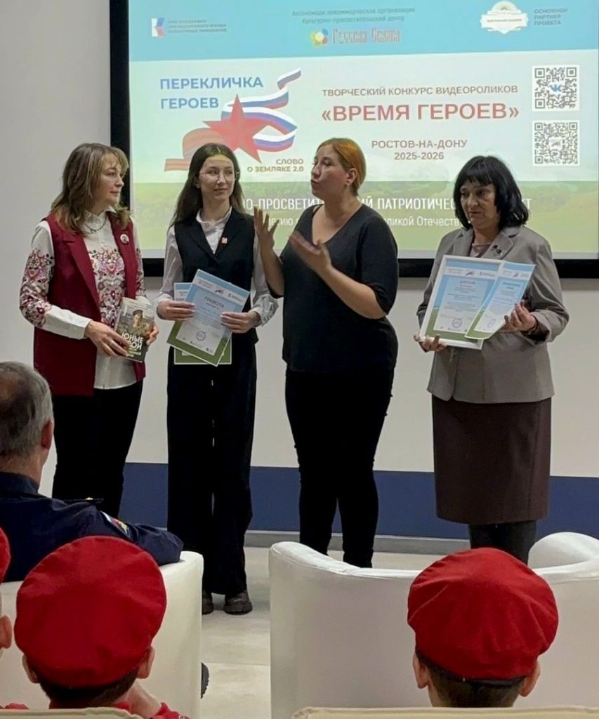 В Ростове-на-Дону подвели итоги масштабного творческого конкурса «Время героев», посвященного современному подвигу и патриотизму. В самой престижной номинации «Лучший видеоролик» победу одержала команда учащихся Гимназии №10 г. Гуково.