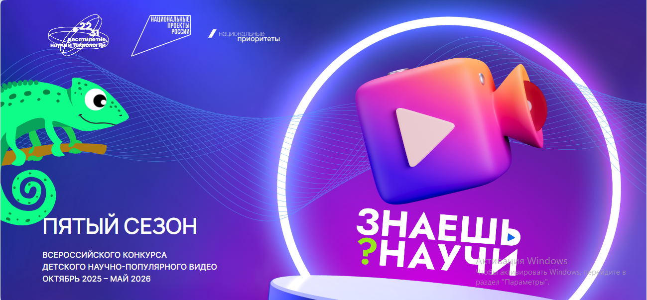 В октябре стартовал пятый сезон конкурса научно-популярного видео «Знаешь? Научи!» для школьников в возрасте от 6 до 18 лет. В этом году участники могут представить свои работы в 6 тематических номинациях.