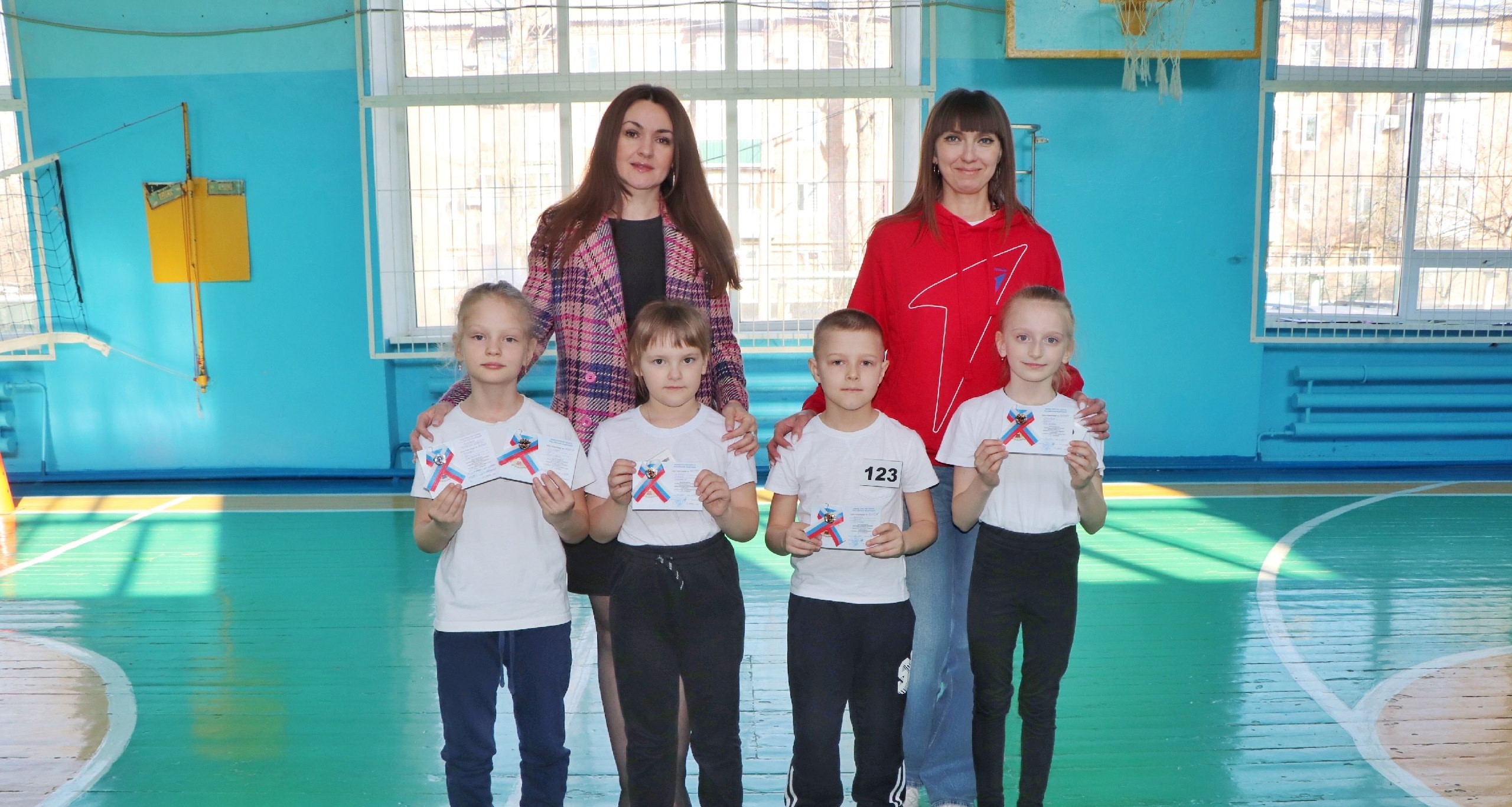 Перед началом мероприятия руководитель центра тестирования Наталья Маньшина и директор лицея Оксана Макрицкая вручили долгожданные знаки ГТО четырём ребятам, ранее успешно выполнившим нормативы: Руслану Долгову, Ксении Кириляк, Еве Цукановой и Дарине Лукашовой.