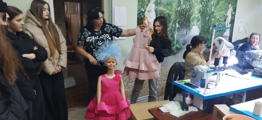 Тамара Юрьевна рассказала о своем производстве, ознакомила с работой раскройного и пошивочного цеха, провела мастер-класс по пошиву детского платья из фатина, продемонстрировала готовую продукцию на манекенах.