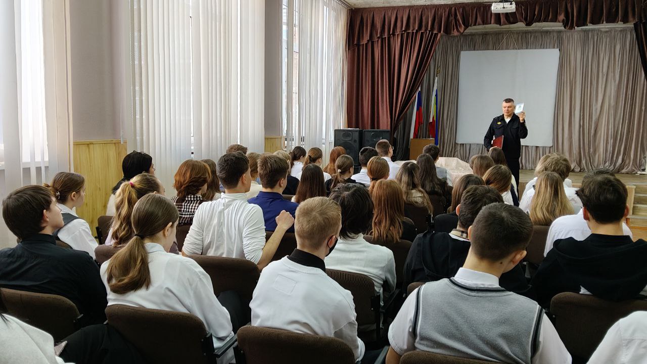 Заместитель начальника Отдела МВД России по г. Гуково – руководитель группы по работе с личным составом подполковник полиции Сергей Владимирович Ходорозя встретился с учениками 10 и 11 классов Лицея № 24.
