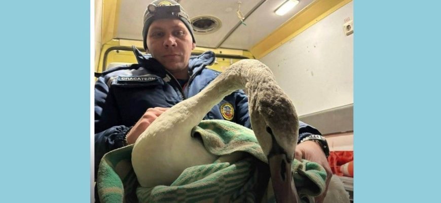 Был в этот раз и не совсем обычный выезд: спасателям предстояло поймать лебедя, который забрел в частные домовладения и выпустить его в естественную среду обитания.