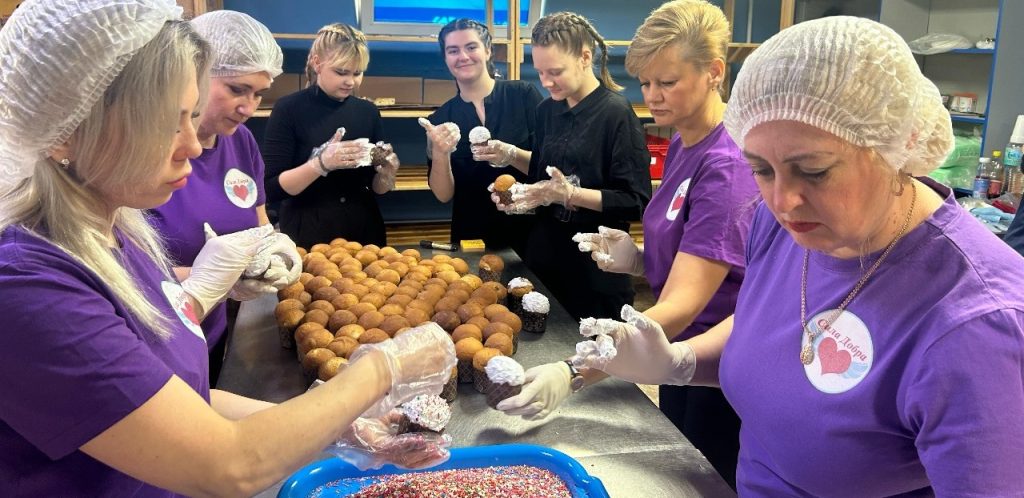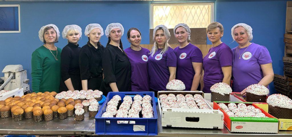 В преддверии светлого праздника, в рамках акции «Дари радость на Пасху!», программы «Активное долголетие» и партпроекта «Старшее поколение», представители волонтерского отряда «Сила добра» детского сада № 8 «Сказка», совместно с волонтерским (добровольческим) отрядом «Рука в руке» Гуковского промышленно-экономического техникума филиала ГБПОУ РО ШРКТЭ им. ак. Степанова П.И., приняли участие в изготовлении пасхальных куличей на пекарне ИП Д.М. Манукян.