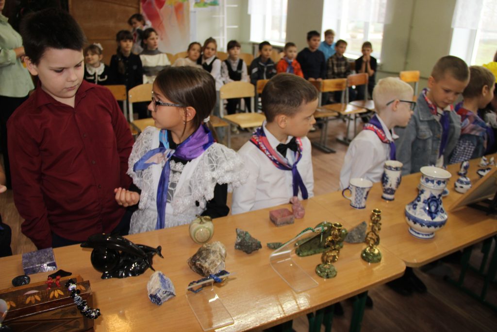 С первых минут экскурсии, которую провели опытные хранители музейных сокровищ Юлия Наумова и Олеся Селезнева, учащиеся с первого по седьмые классы словно перенеслись в сказочную страну. Перед их глазами ожили яркие узоры хохломы, сияющая гладь гжели, и блеск самоцветов и поделочных камней, из которых рождаются диковинные сувениры, изящные бусы, стильные настольные часы и уютные подсвечники.