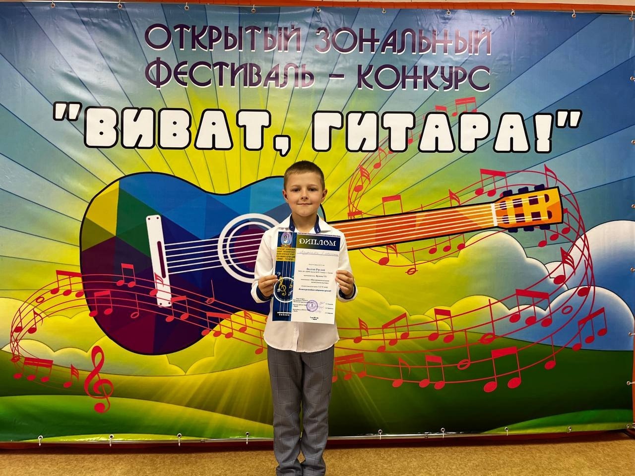 В субботу, 17 мая, в городе Зверево прошёл открытый зональный фестиваль-конкурс «Виват, Гитара!». ДШИ им. М.И.Глинки г. Гуково представил Руслан Долгов, который занимается у Татьяны Евгеньевны Ярдиной.