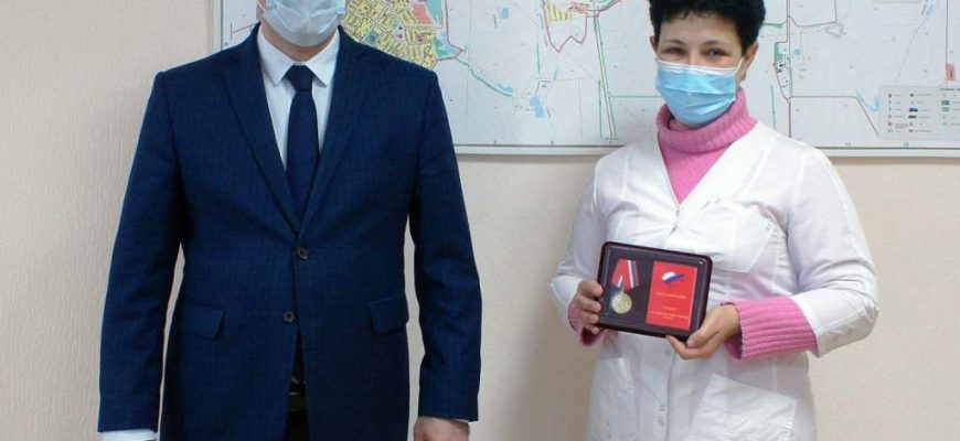 Глава Администрации Евгений Гриненко вручил общественную медаль «За добросовестный труд» старшему фельдшеру отделения скорой медицинской помощи МБУЗ «Центральная городская больница» г. Гуково Ольге Земцовой. «Эта медаль — награда за вашу многолетнюю работу в здравоохранении нашего муниципального образования. Особо следует отметить добросовестное выполнение поставленных перед вами задач в период пандемии новой коронавирусной инфекции», — сказал Евгений Гриненко.