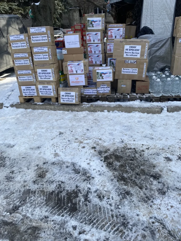 Большую поддержку в сборе всей гуманитарной помощи на регулярной основе оказывают руководители и коллективы хлебозавода «Золотая Нива», аптеки «Виола», магазинов «Шоколад», «Светофор», «Магнит», Омаров Ширин Магомед Оглы, Максим Нестеренко, Стас Венцловас, Денис Муратов и Максим Тимошин из Новошахтинска, настоятель и прихожане Храма Святой Великомученицы Варвары, муниципальный штаб Общероссийской акции взаимопомощи «Мы вместе» города Гуково, коллектив школы №1, руководство Администрации города Гуково и, конечно, все постоянные помощники и неравнодушные пенсионеры и жители города Гуково.